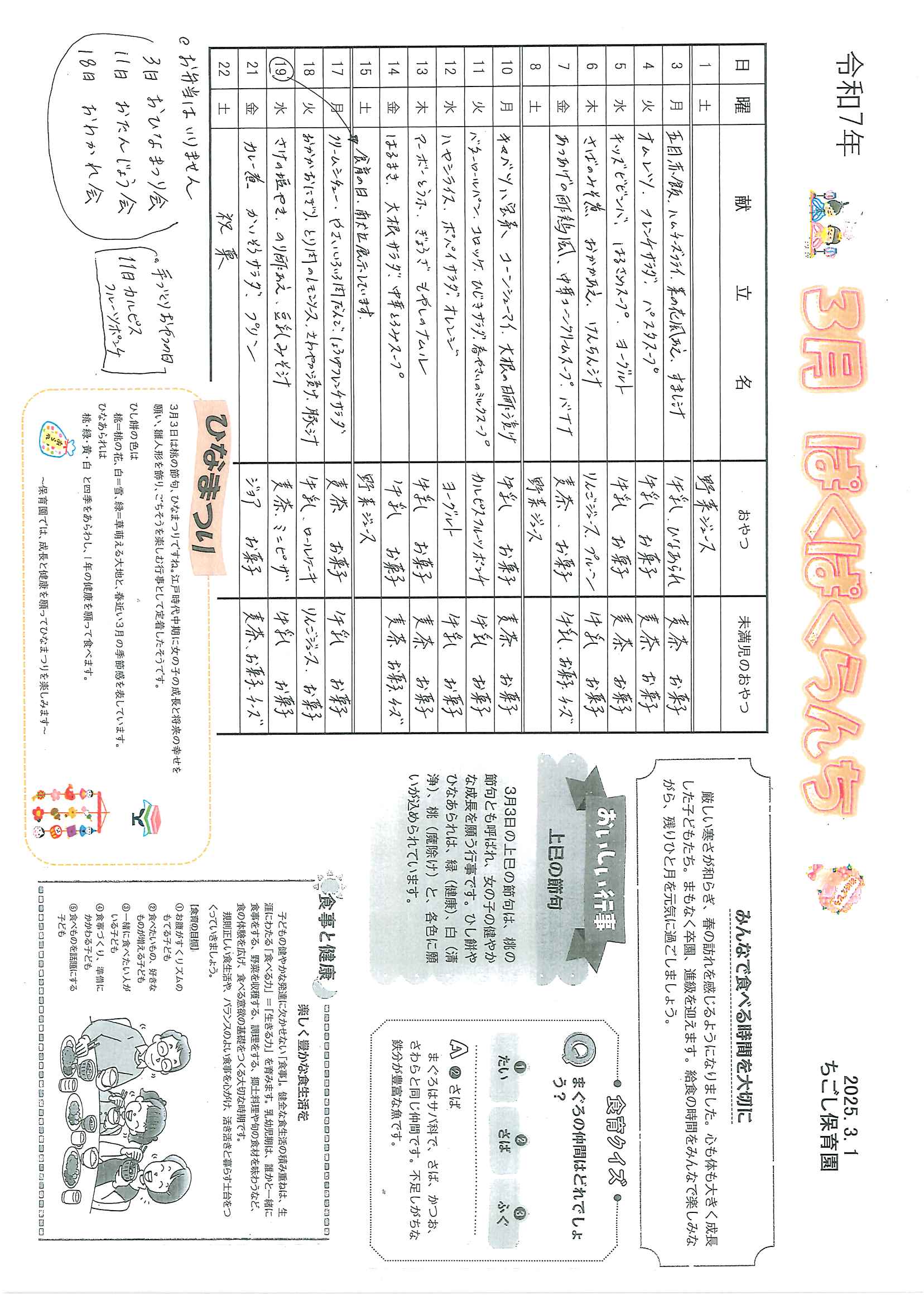 「給食だより」 令和7年 3月号